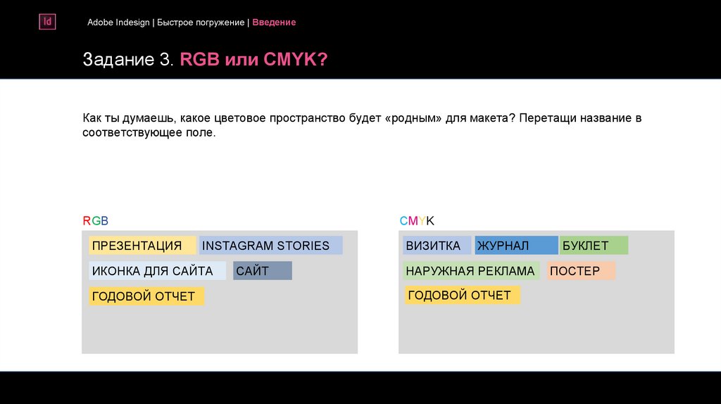 Adobe Indesign | Быстрое погружение | ВведениеЗадание 3. RGB или CMYK?