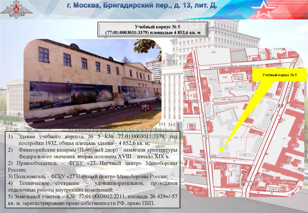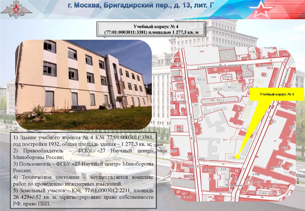1) Здание учебного корпуса № 4 К№ 77:01:0003011:3381,