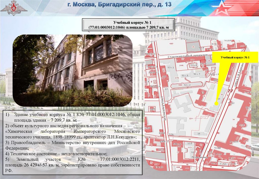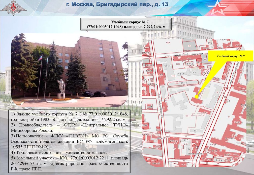 1) Здание учебного корпуса № 7 К№ 77:01:0003012:1048,