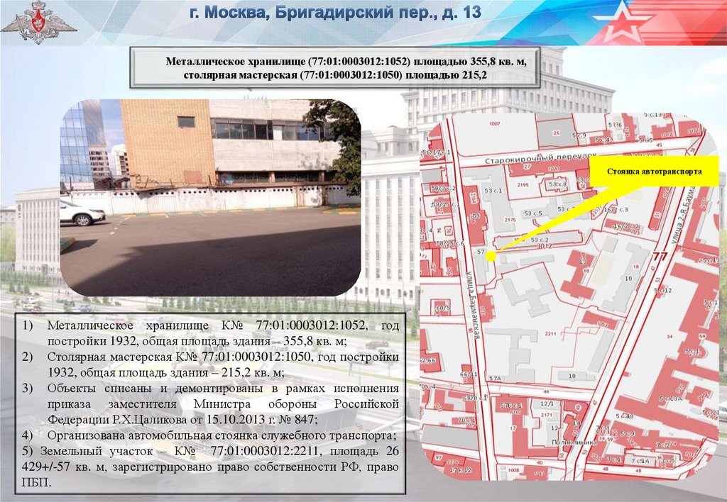 Металлическое хранилище (77:01:0003012:1052) площадью 355,8 кв. м,столярная мастерская (77:01:0003012:1050) площадью 215,2
