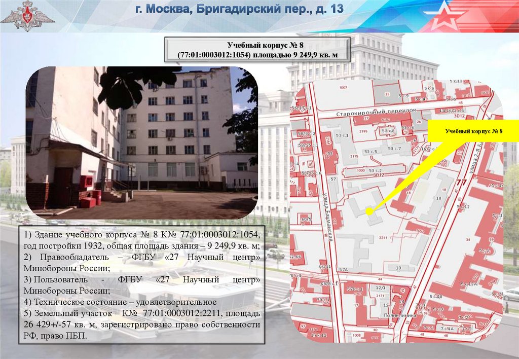 1) Здание учебного корпуса № 8 К№ 77:01:0003012:1054,