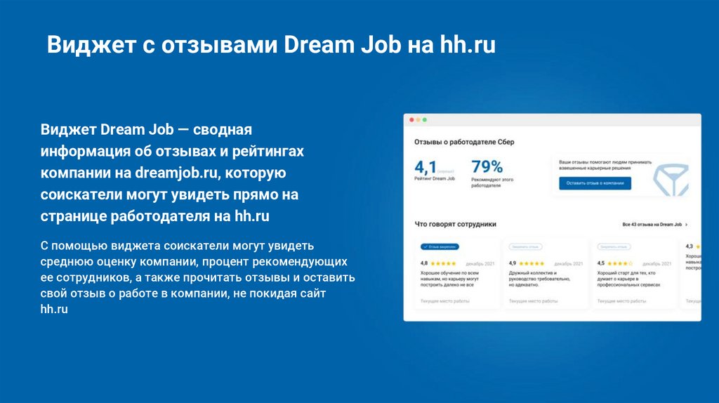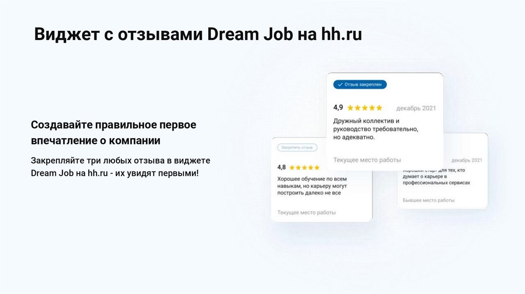 Виджет с отзывами Dream Job на hh.ruСоздавайте правильное первое