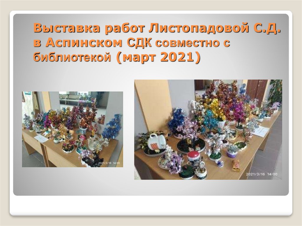 Выставка работ Листопадовой С.Д.в Аспинском СДК совместно с
