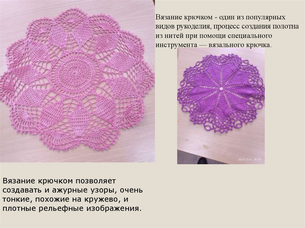 Вязание крючком - один из популярныхвидов рукоделия, процесс создания полотна