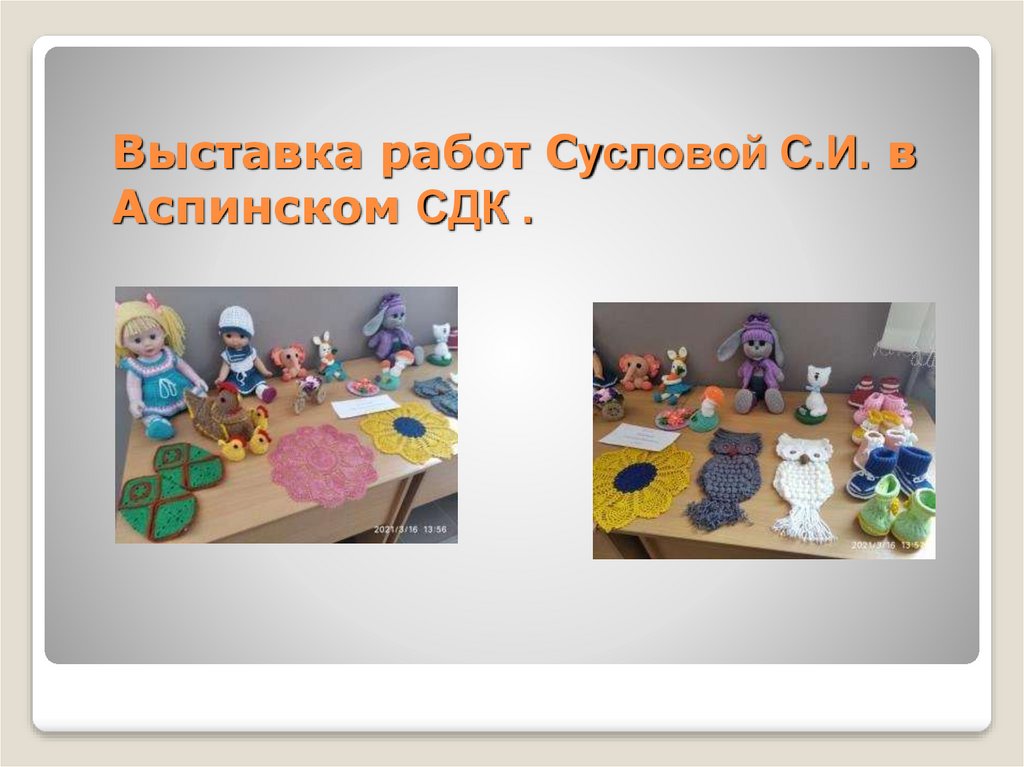 Выставка работ Сусловой С.И. вАспинском СДК .