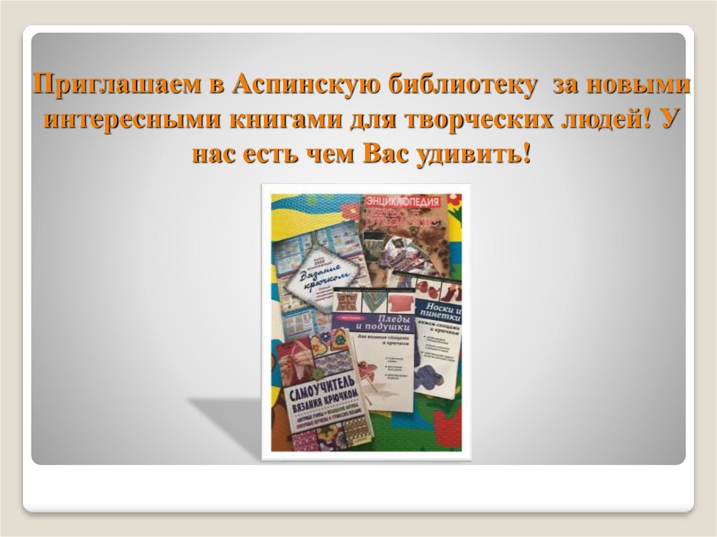 Приглашаем в Аспинскую библиотеку за новымиинтересными книгами для творческих людей! У
