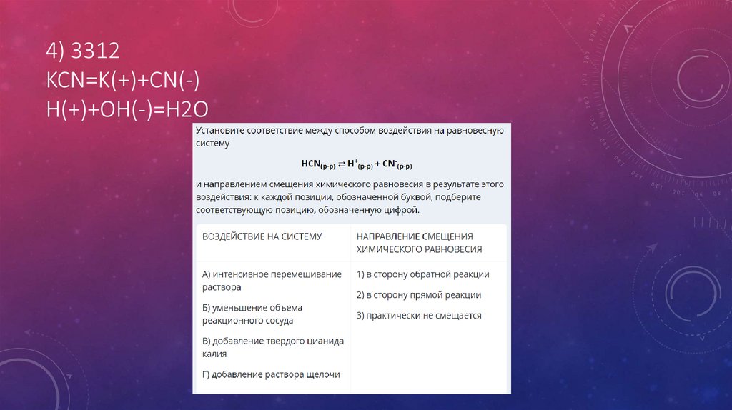 4) 3312KCN=K(+)+CN(-)