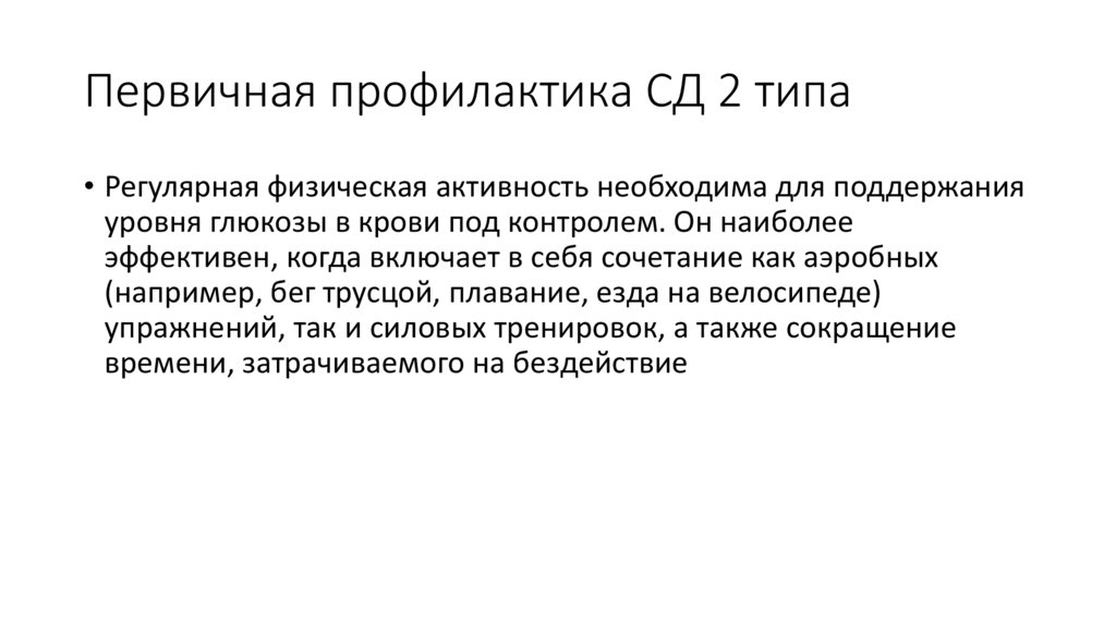 Первичная профилактика СД 2 типа• Регулярная физическая активность необходима для поддержания