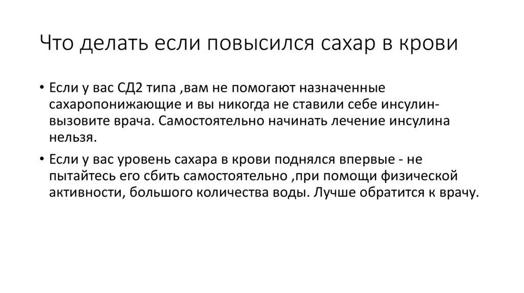 Что делать если повысился сахар в крови• Если у вас СД2 типа ,вам не помогают назначенные