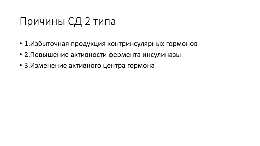 Причины СД 2 типа• 1.Избыточная продукция контринсулярных гормонов