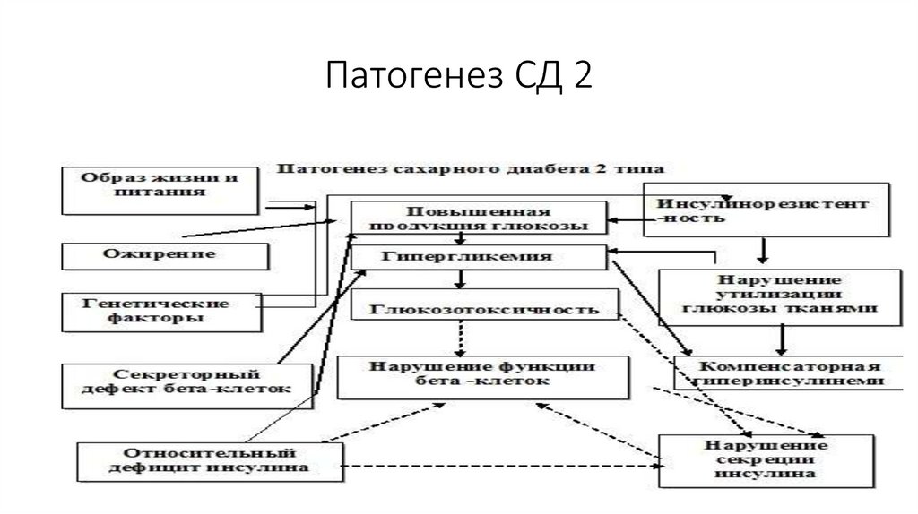 • Диабет 2-го типа (ранее – инсулиннезависимый или диабетвзрослых) развивается в результате неэффективного