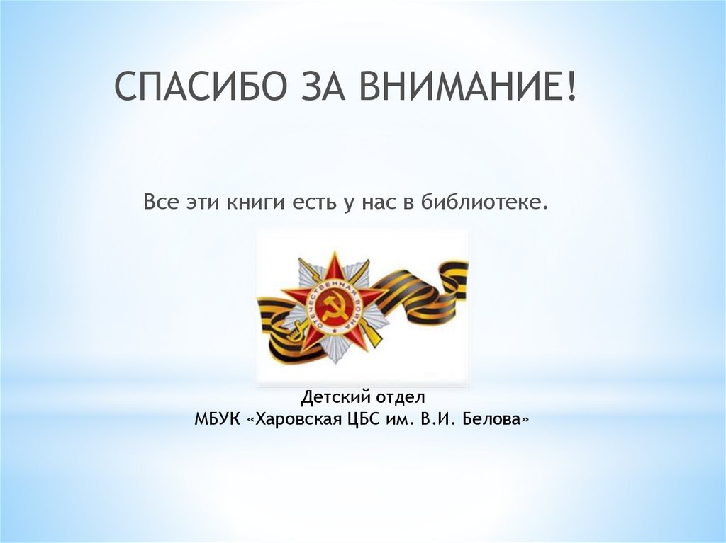 СПАСИБО ЗА ВНИМАНИЕ!Все эти книги есть у нас в библиотеке.