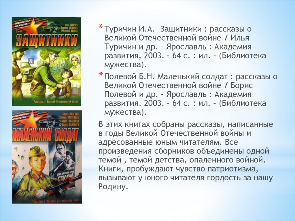 * Полевой Б.Н. Маленький солдат : рассказы о