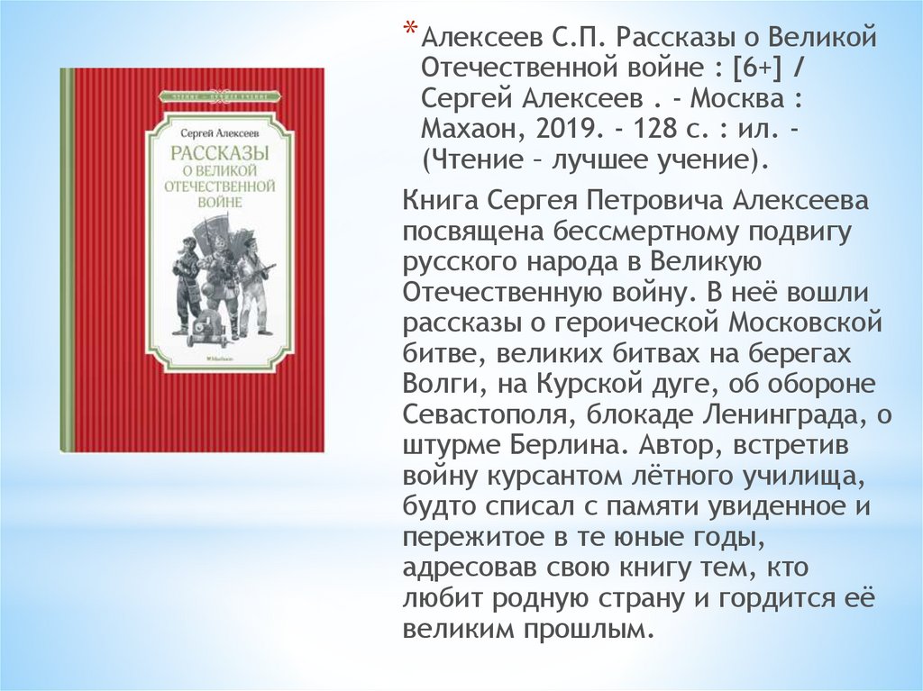 * Алексеев С.П. Рассказы о ВеликойОтечественной войне : [6+] /