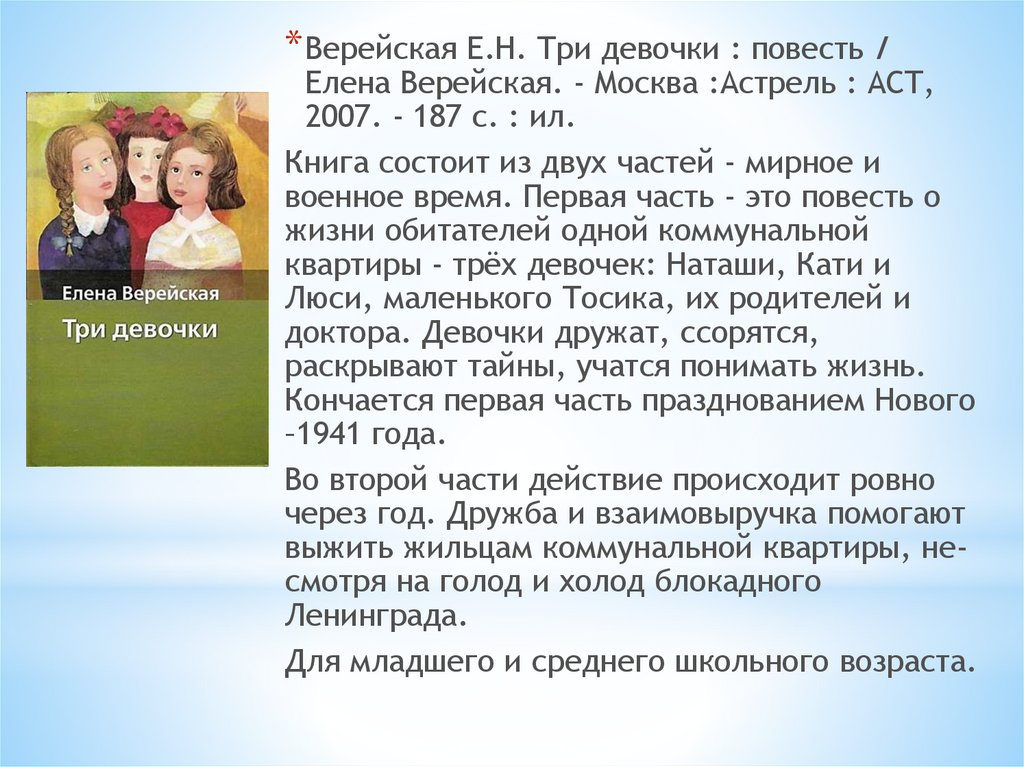 * Верейская Е.Н. Три девочки : повесть /Елена Верейская. - Москва :Астрель : АСТ,
