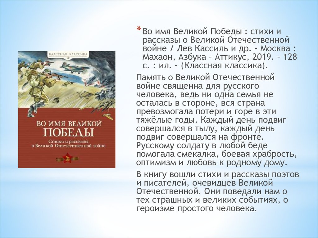* Во имя Великой Победы : стихи ирассказы о Великой Отечественной
