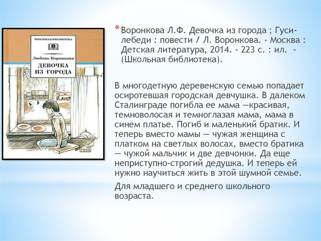 * Воронкова Л.Ф. Девочка из города ; Гуси-лебеди : повести / Л. Воронкова. - Москва :