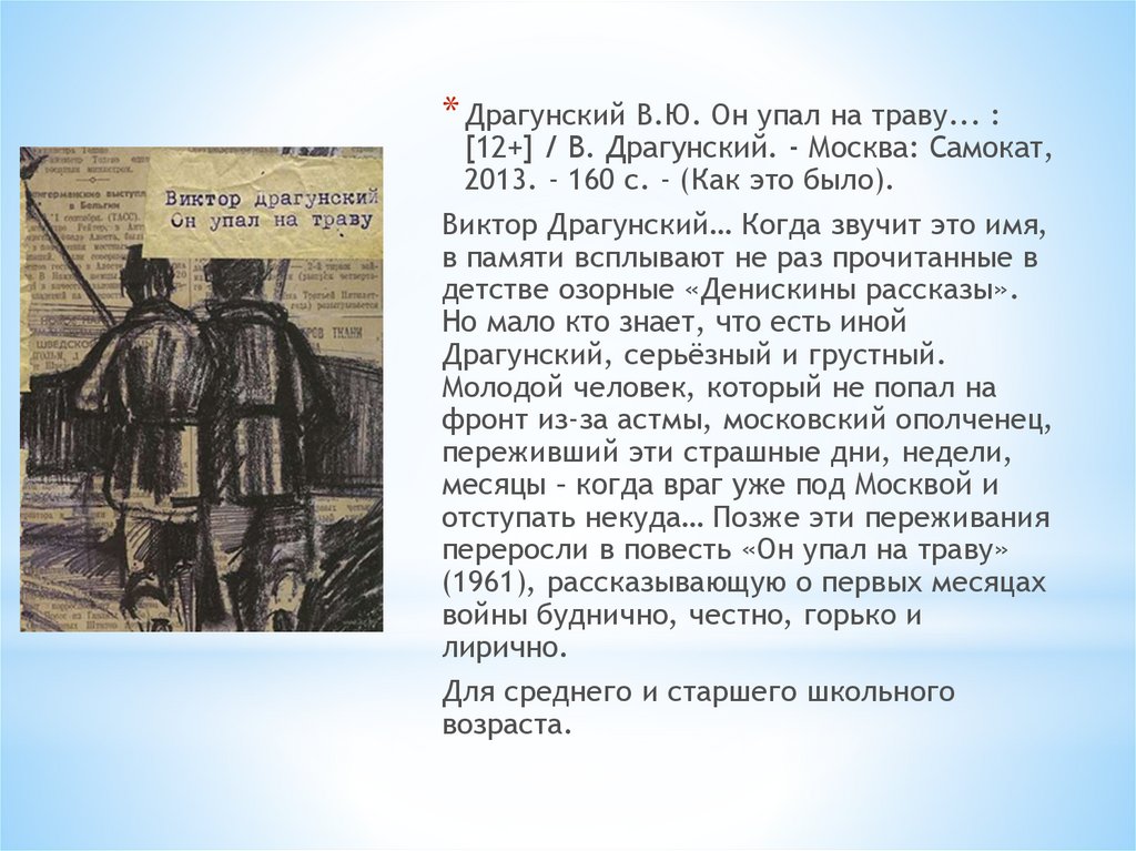 * Драгунский В.Ю. Он упал на траву... :[12+] / В. Драгунский. - Москва: Самокат,