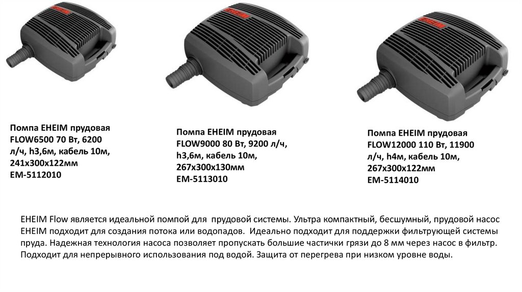 EHEIM Flow является идеальной помпой для прудовой системы. Ультра компактный, бесшумный, прудовой насос