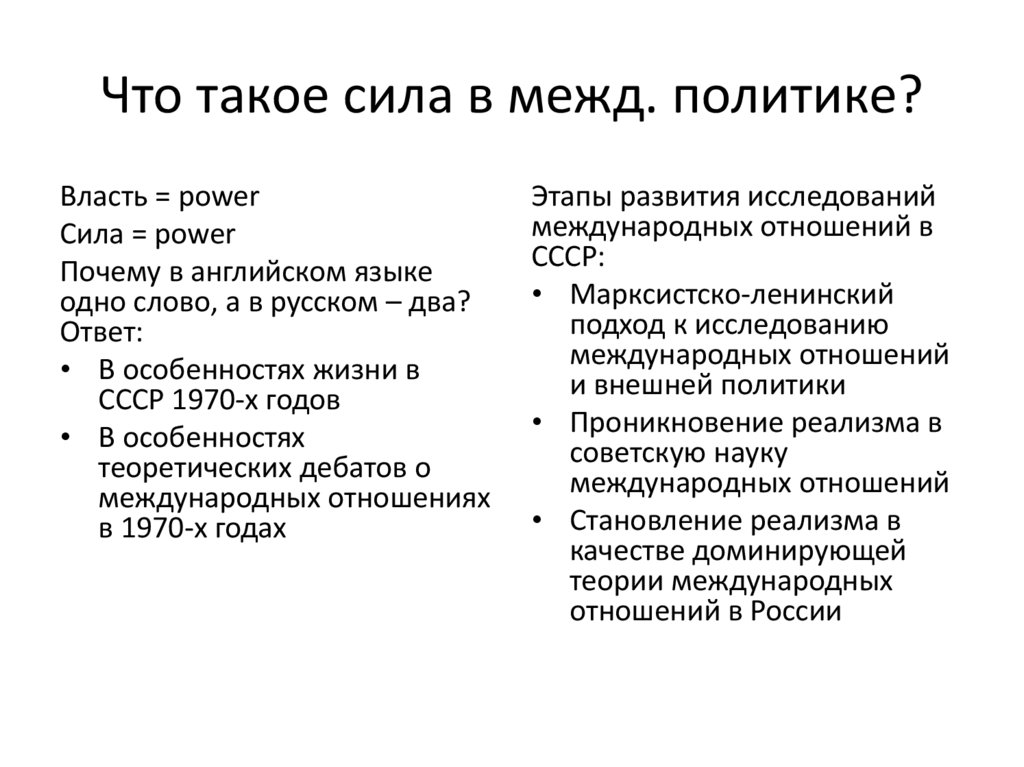 Что такое сила в межд. политике?Власть = power