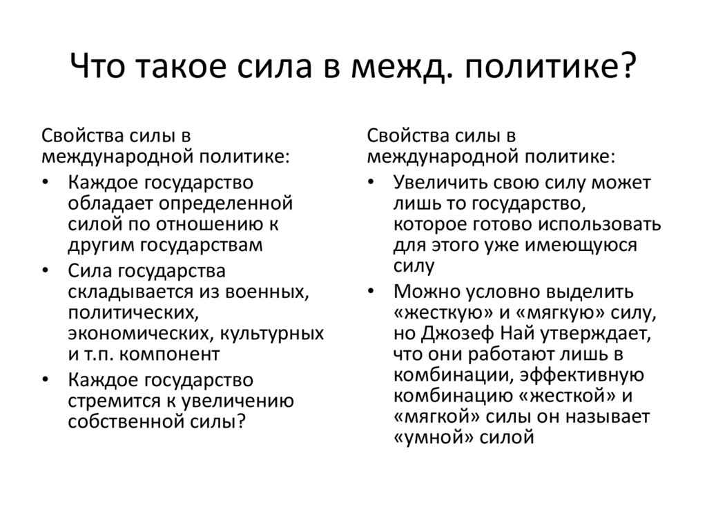 Что такое сила в межд. политике?12.