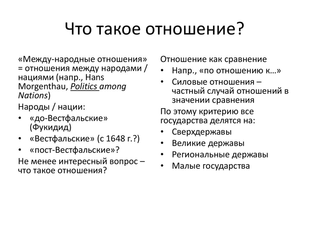 Что такое отношение?«Между-народные отношения»