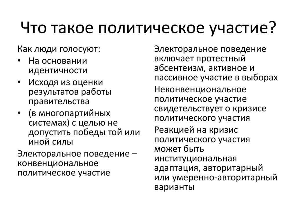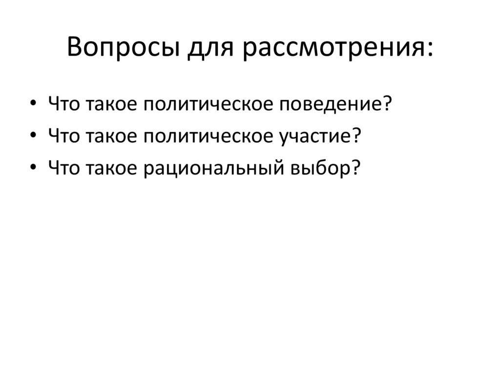 Вопросы для рассмотрения:• Что такое политическое поведение?