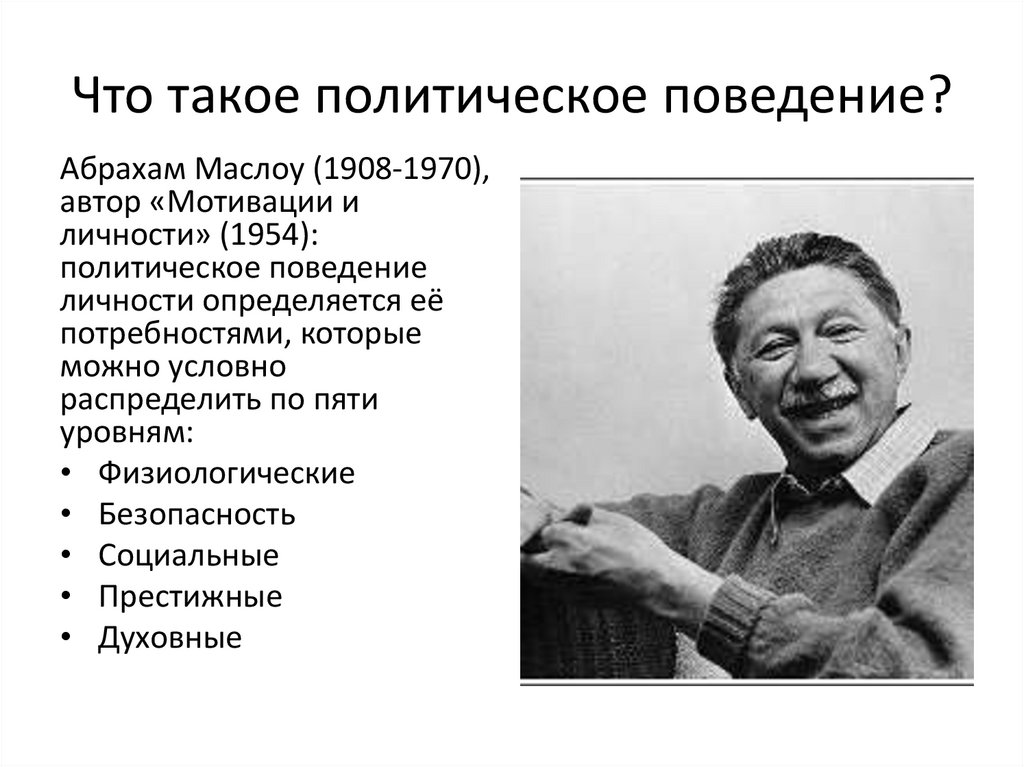 Что такое политическое поведение?Абрахам Маслоу (1908-1970),