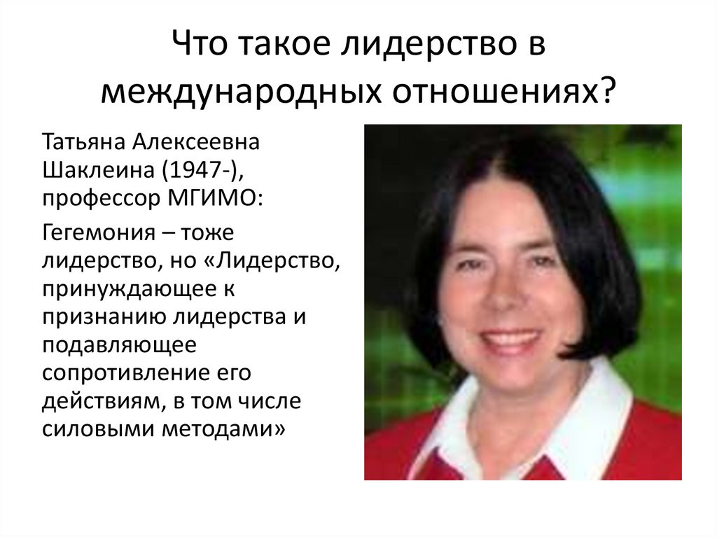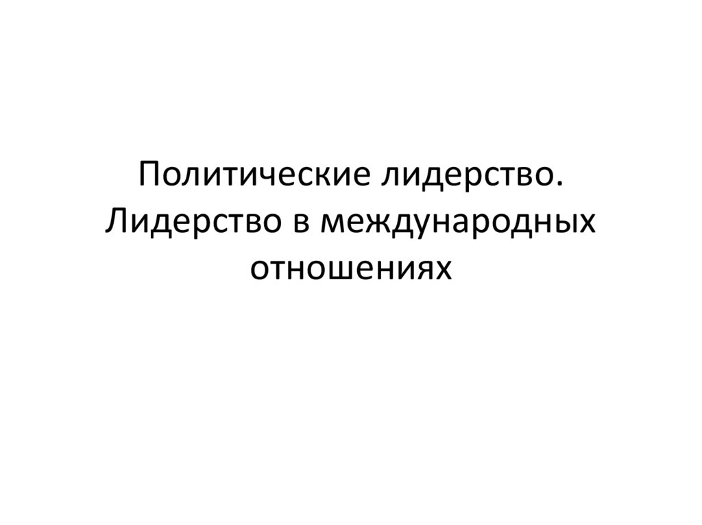 Политические лидерство. Лидерство в международных отношениях. Лекция 5
