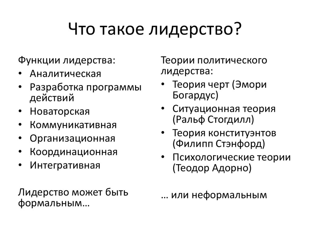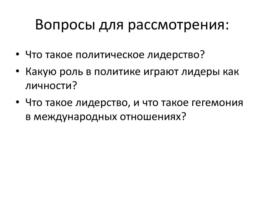 Вопросы для рассмотрения:• Что такое политическое лидерство?