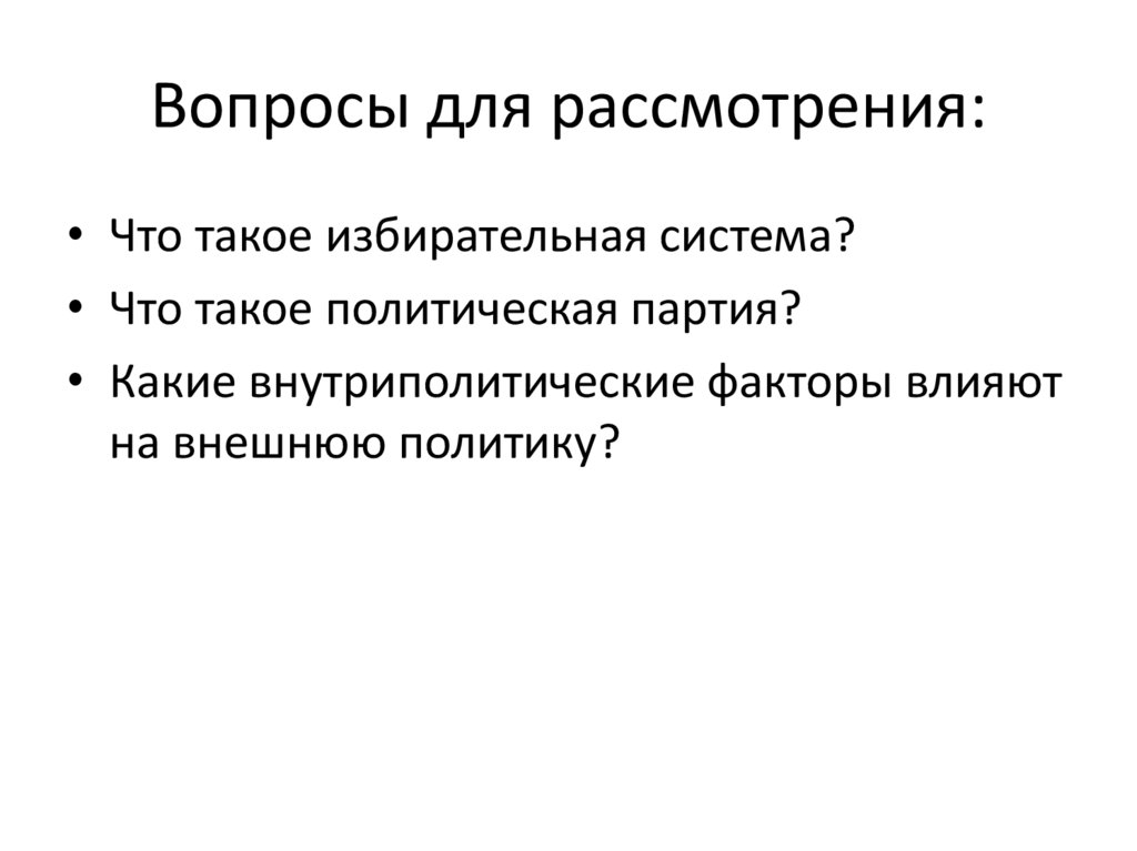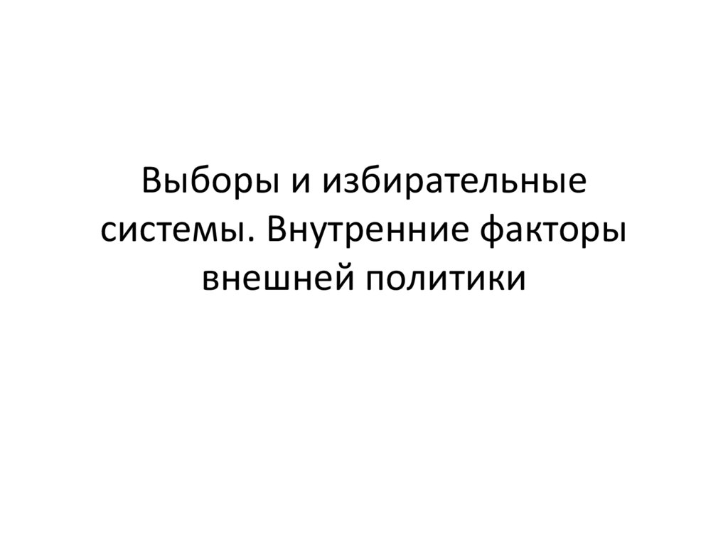 Выборы и избирательные системы. Внутренние факторы внешней политики. Лекция 11
