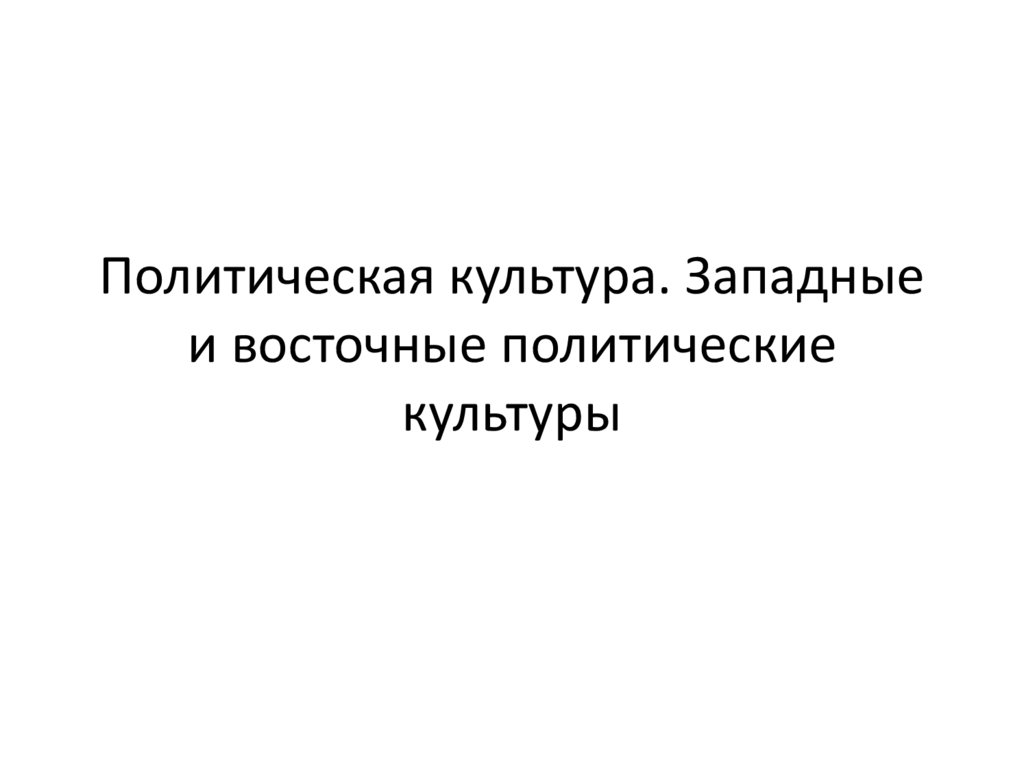 Политическая культура. Западныеи восточные политические