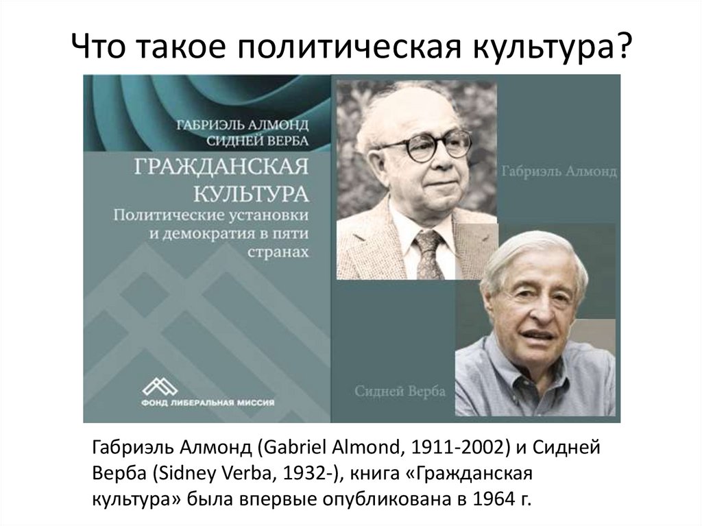 Что такое политическая культура?Габриэль Алмонд (Gabriel Almond, 1911-2002) и Сидней