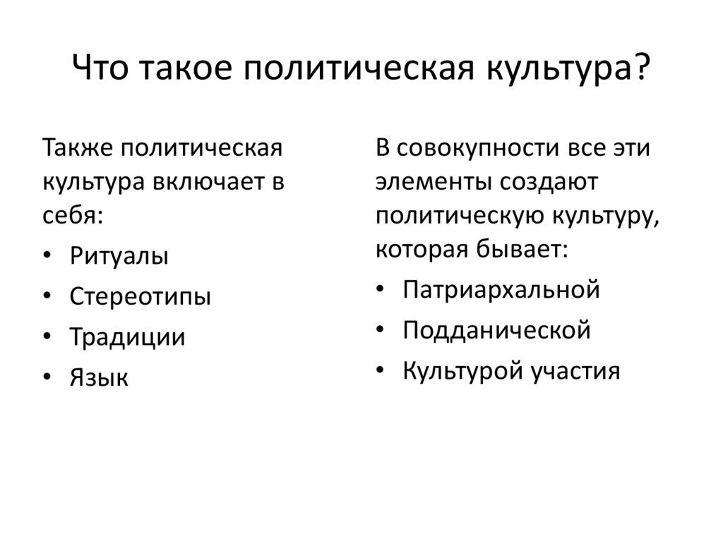 Что такое политическая культура?Политическая культура