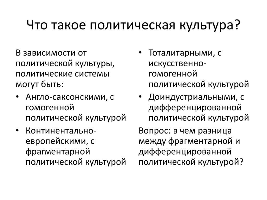 Что такое политическая культура?В зависимости от
