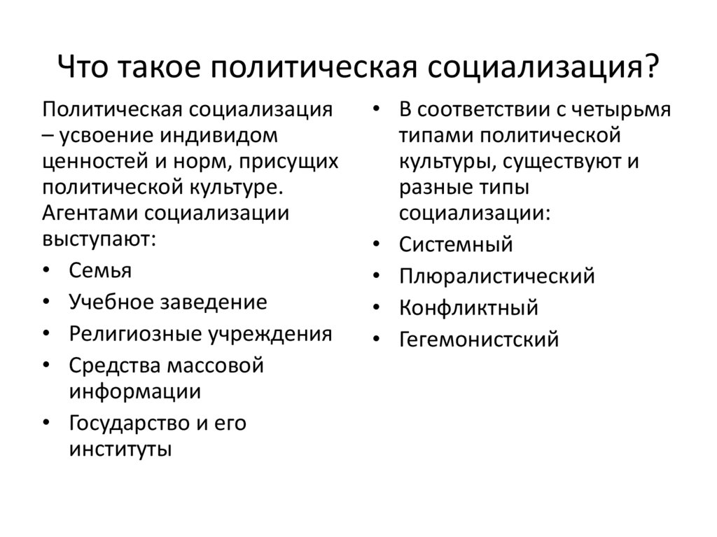 • Что такое политическая социализация?