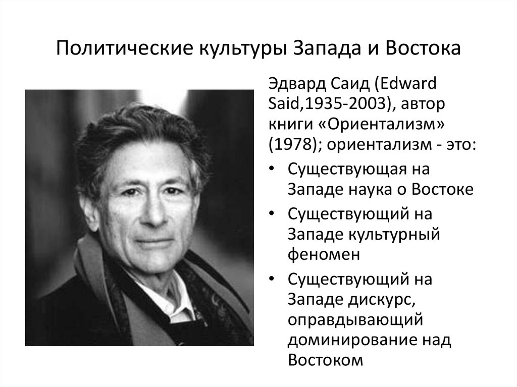 Политические культуры Запада и ВостокаЭдвард Саид (Edward