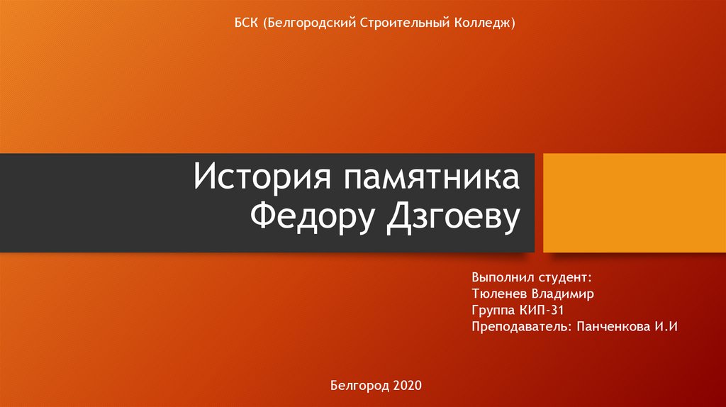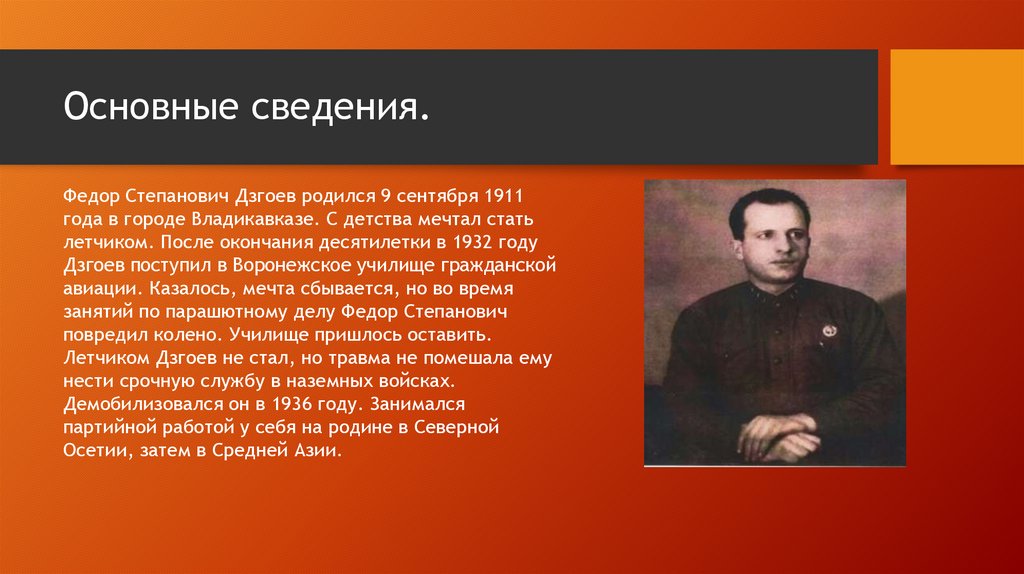 Основные сведения.Федор Степанович Дзгоев родился 9 сентября 1911
