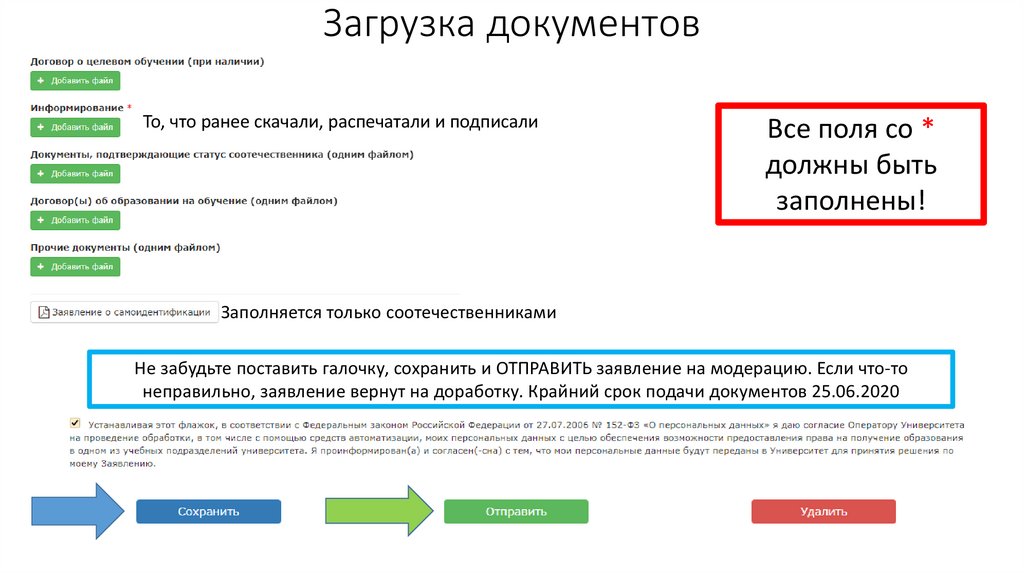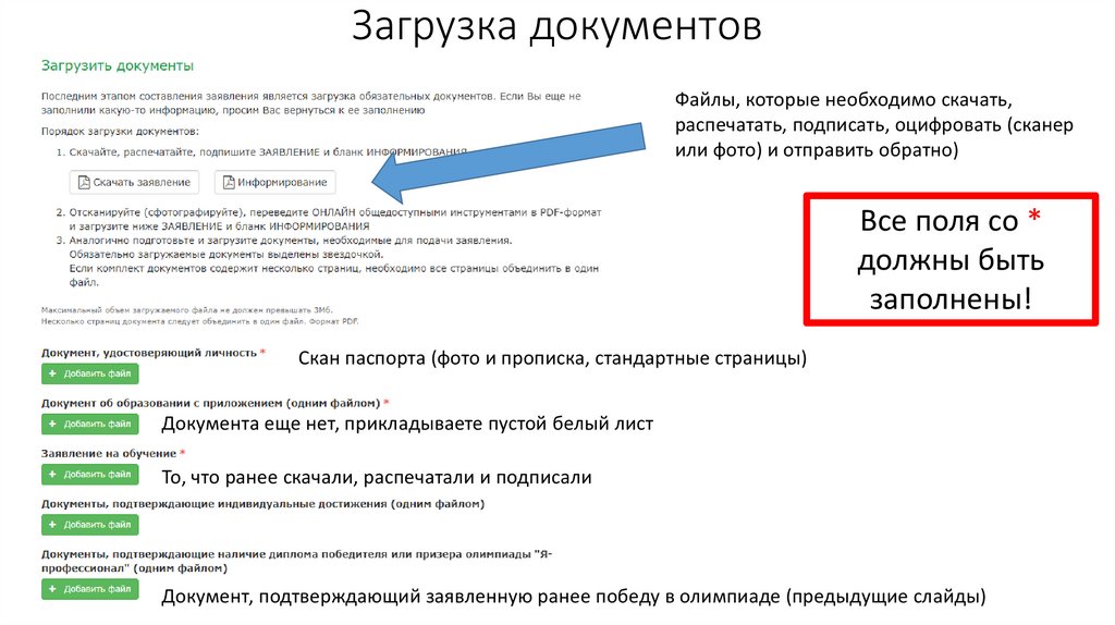 Загрузка документовТо, что ранее скачали, распечатали и подписали