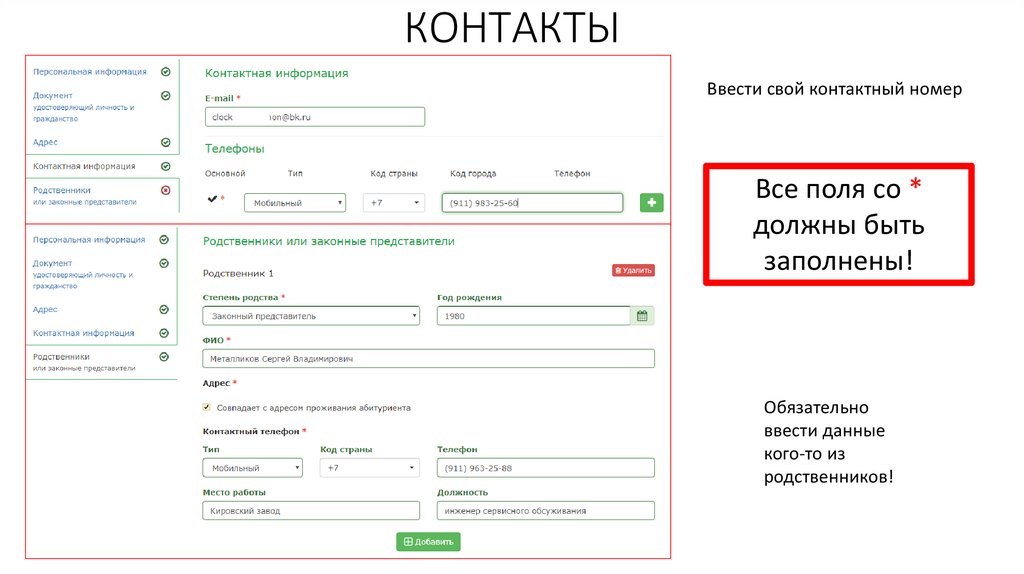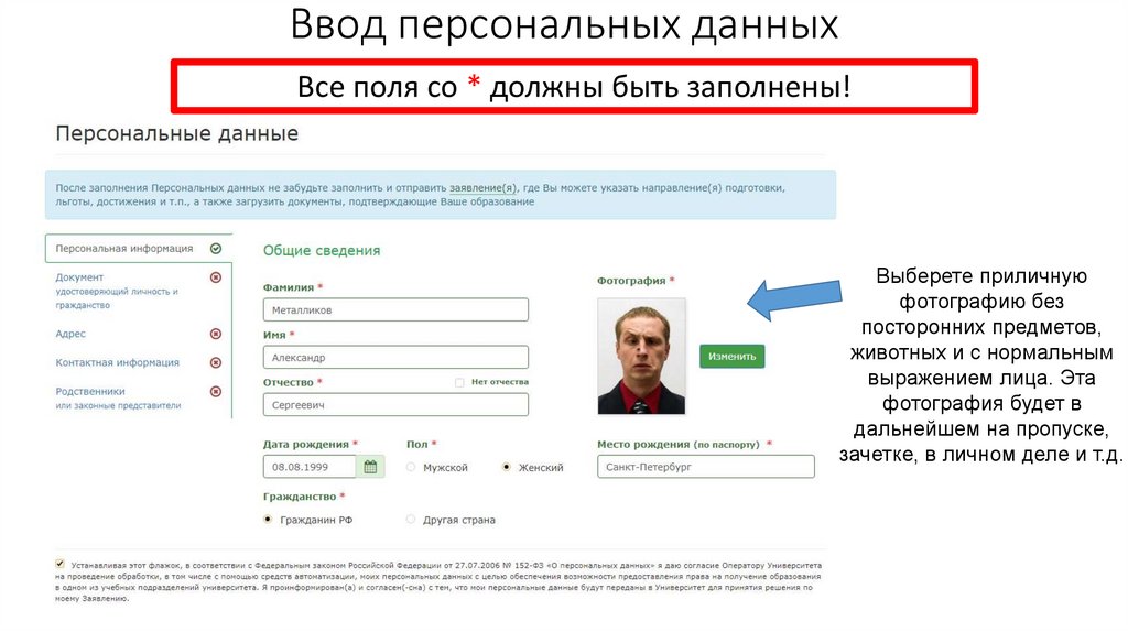 Ввод персональных данныхВсе поля со * должны быть заполнены!