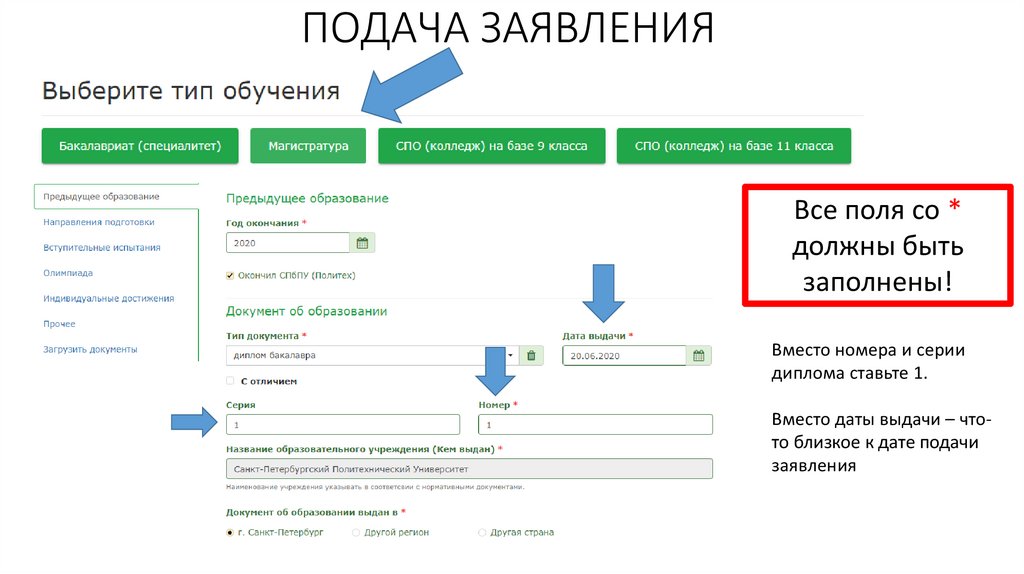 ПОДАЧА ЗАЯВЛЕНИЯВсе поля со *