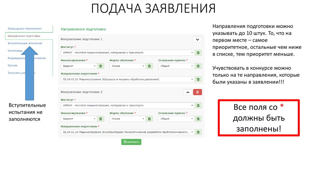 ПОДАЧА ЗАЯВЛЕНИЯНаправления подготовки можно