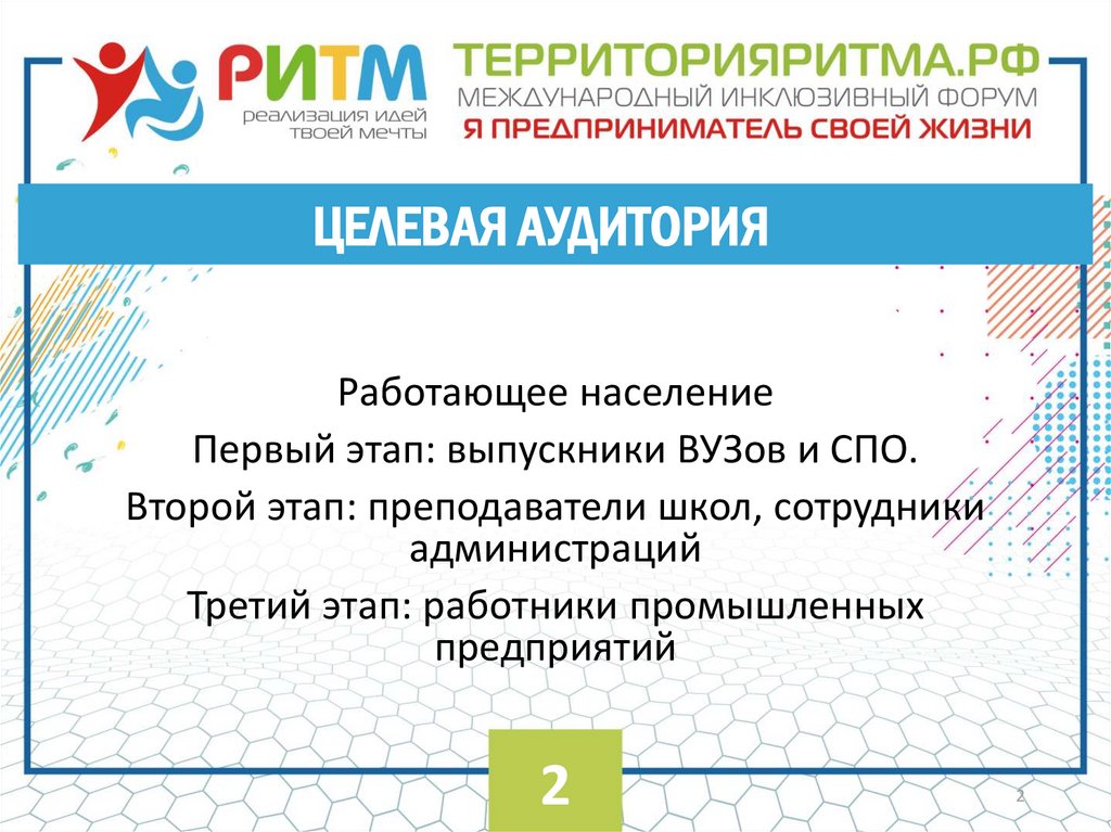 ЦЕЛЕВАЯ АУДИТОРИЯРаботающее население