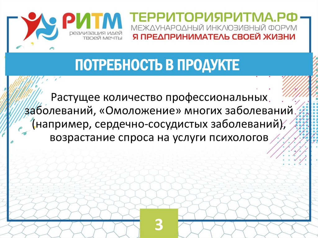 ПОТРЕБНОСТЬ В ПРОДУКТЕРастущее количество профессиональных