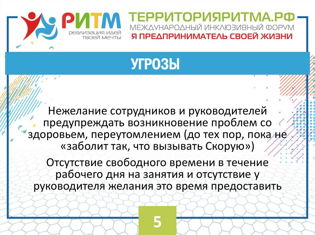 УГРОЗЫНежелание сотрудников и руководителей