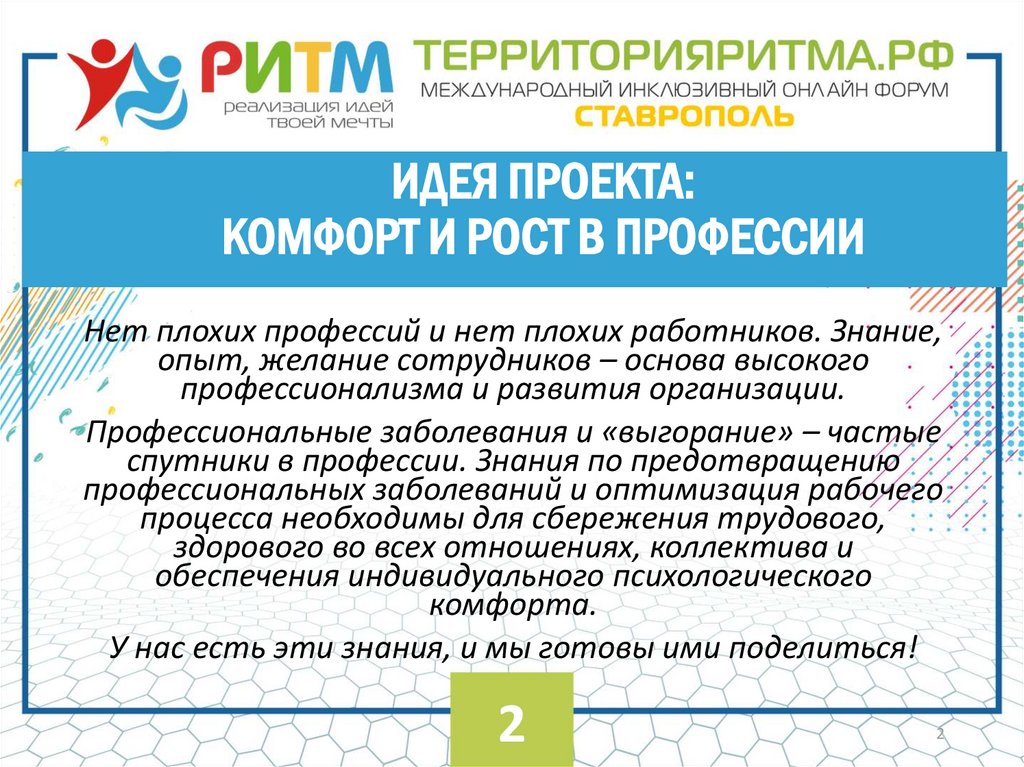 ИДЕЯ ПРОЕКТА:КОМФОРТ И РОСТ В ПРОФЕССИИ
