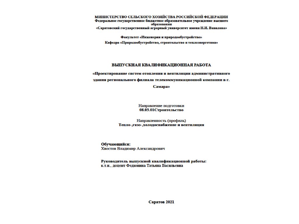 Проектирование систем отопления и вентиляции административного здания регионального филиала телекоммуникационной компании
