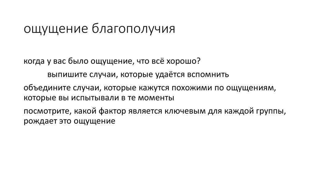 ощущение благополучиякогда у вас было ощущение, что всё хорошо?