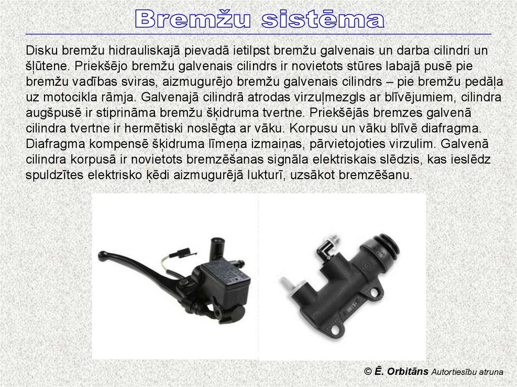 Motociklu bremžu sistēmas elementu izvietojums