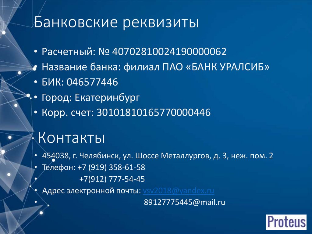 Банковские реквизитыРасчетный: № 40702810024190000062
